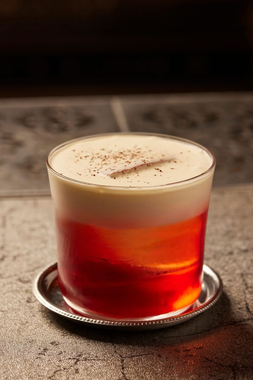 There’s the Fløde (cream in Danish) – Damiano’s homage to his adopted home. Here he transforms the American Old Fashioned into Denmark’s favorite dessert, rødgrød med fløde (red berries with cream). Danish whiskey is cut with some bourbon and Irish whiskey, then infused with homegrown strawberries then layered with local cream.